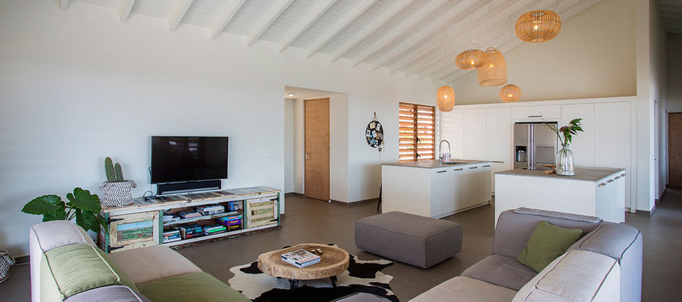 De villa is in 2017 gebouwd. De architectuur is tropisch en modern tegelijk waarbij de vormgeving zodanig is dat de wind altijd door de woning stroomt maar ook zo dat het niet teveel is. De living met keuken, porch, terrassen en zwembad liggen op de eerste verdieping. Van daaruit heb je net als vanuit de master bedroom fantastische vergezichten op de baai en de Caribische zee.